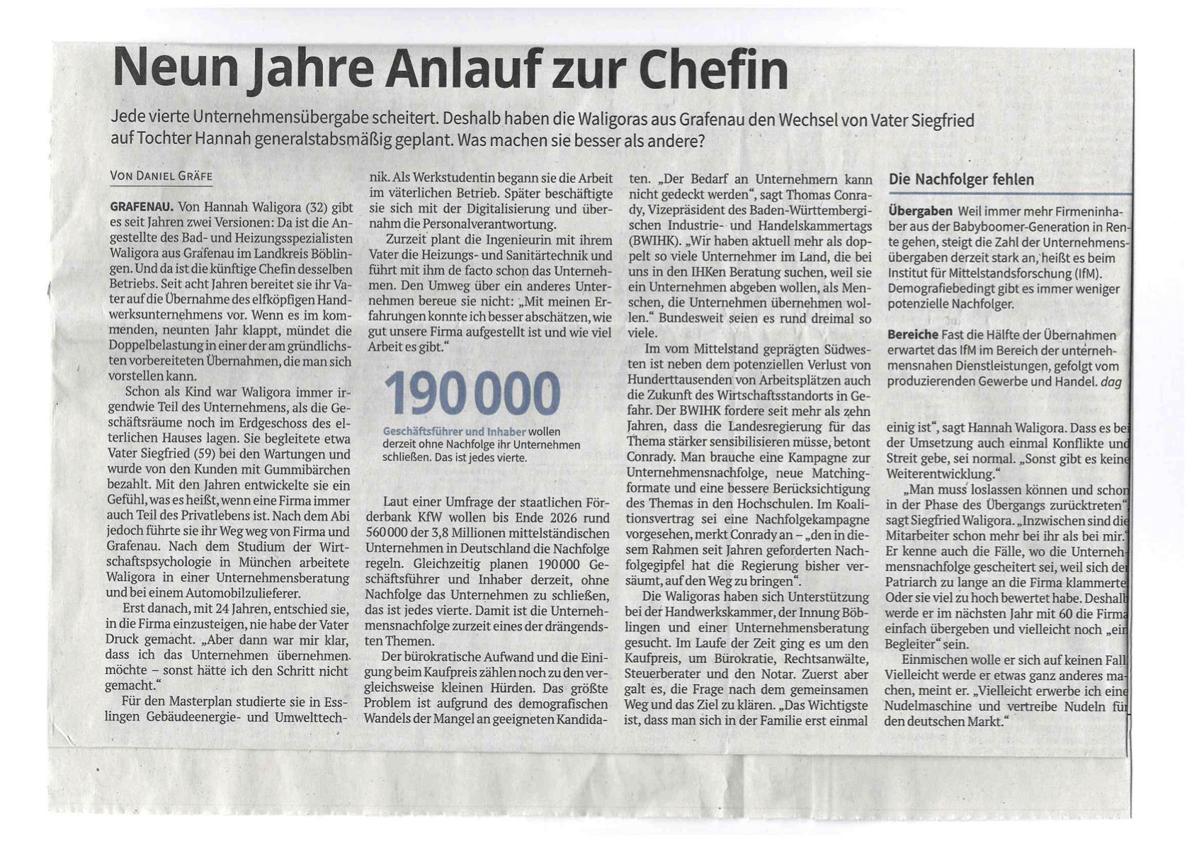 Ein Presseartikel zur Unternehmensnachfolge vom 07.06.2023